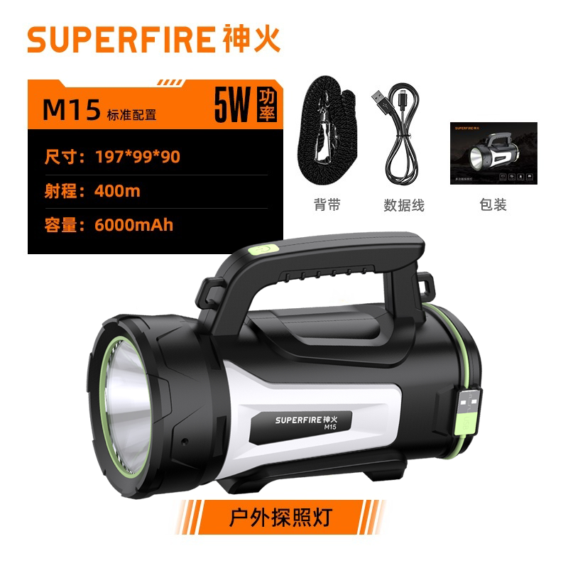 多功能手提探照灯,尾部带跑马灯,超长续航带电量显示,户外巡逻,抢险救灾必备神器。