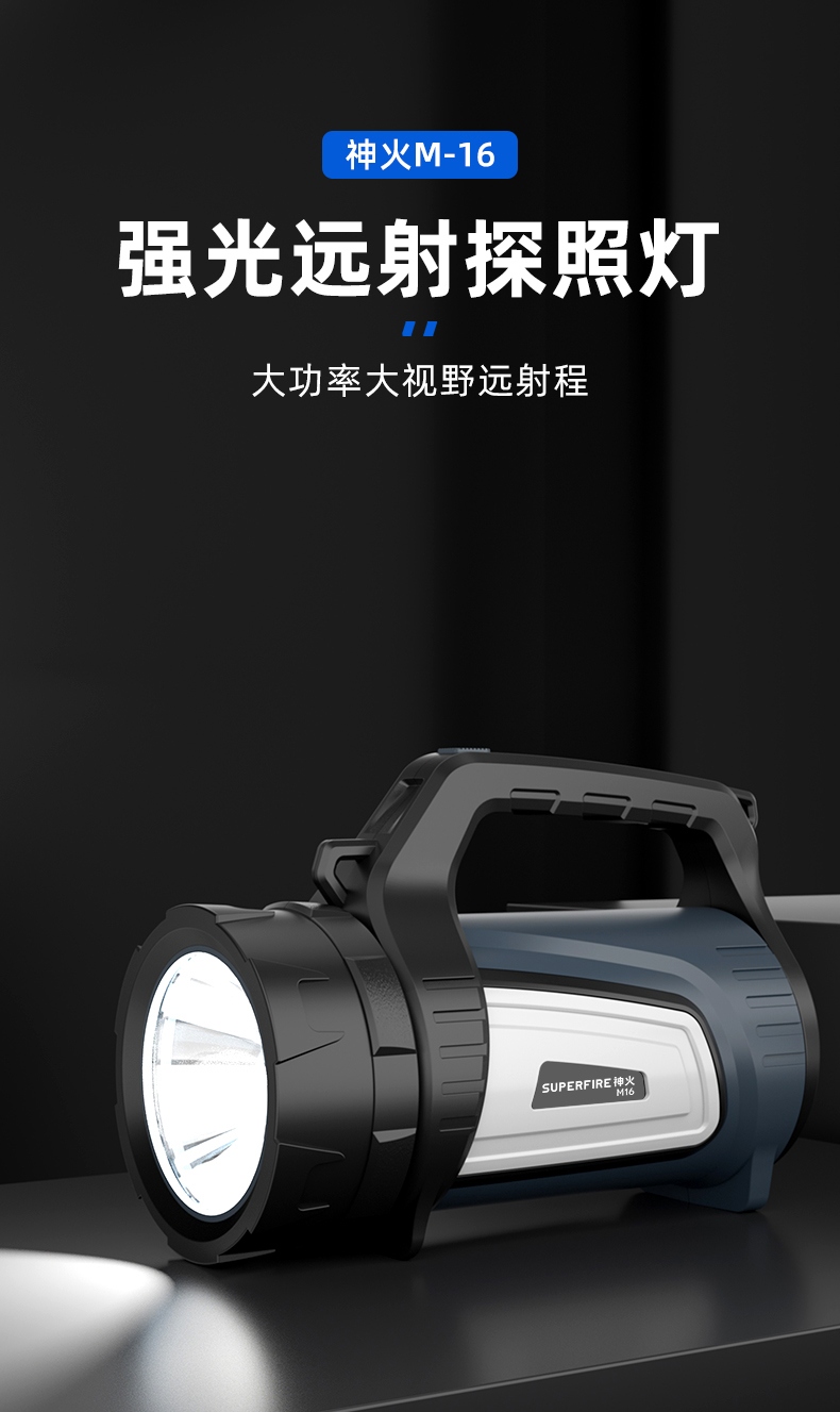 1、多档调光,可满足不同使用场景下的照明需求; 2、含提手,握感更舒适。携带更简单; 3、新型高亮远射灯珠,60W大功率,亮度高,照明效果好。