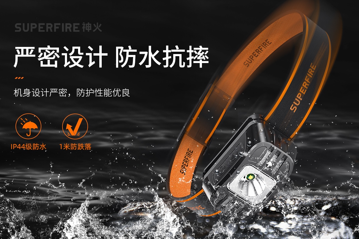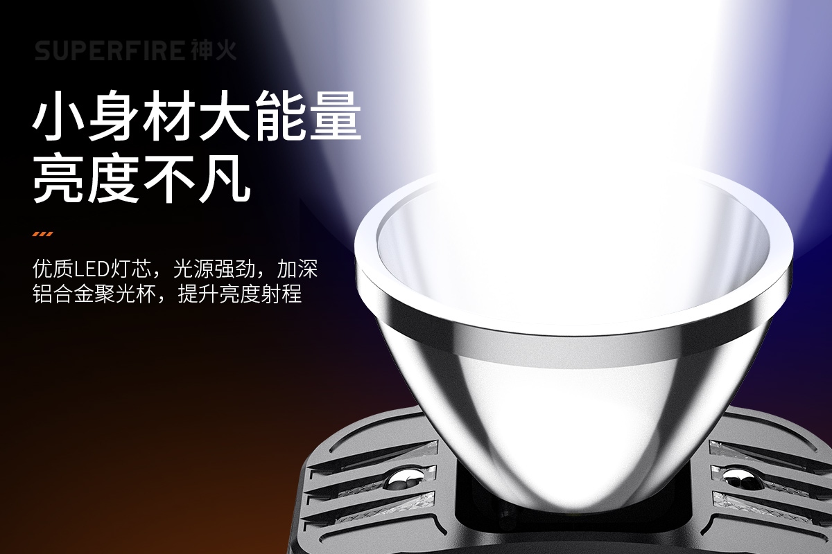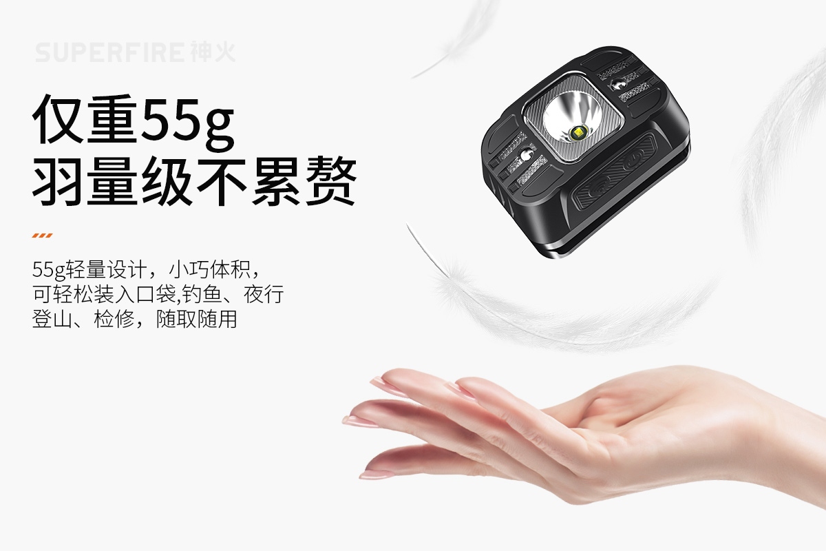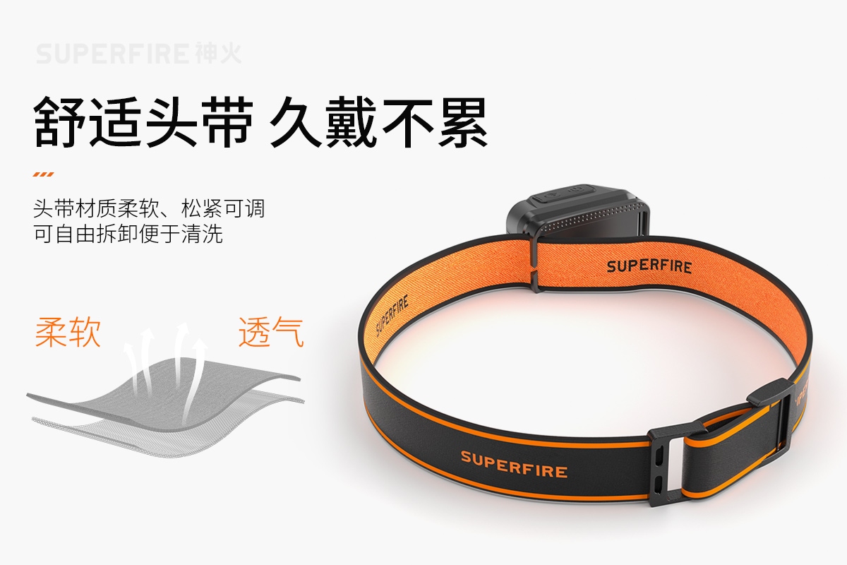 强光亮度,运动头灯,前后均衡设计,轻便不压头,可调节式头灯带,佩戴方便舒适,伸缩调焦,光照范围大,照射距离远,头灯角度调节,超90度角度随意调节,适宜各种环境使用