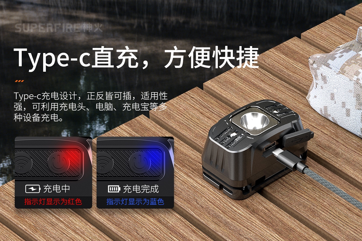 四档调光 Type-C充电 电量显示 铝合金筒身 持久续航 强力防水