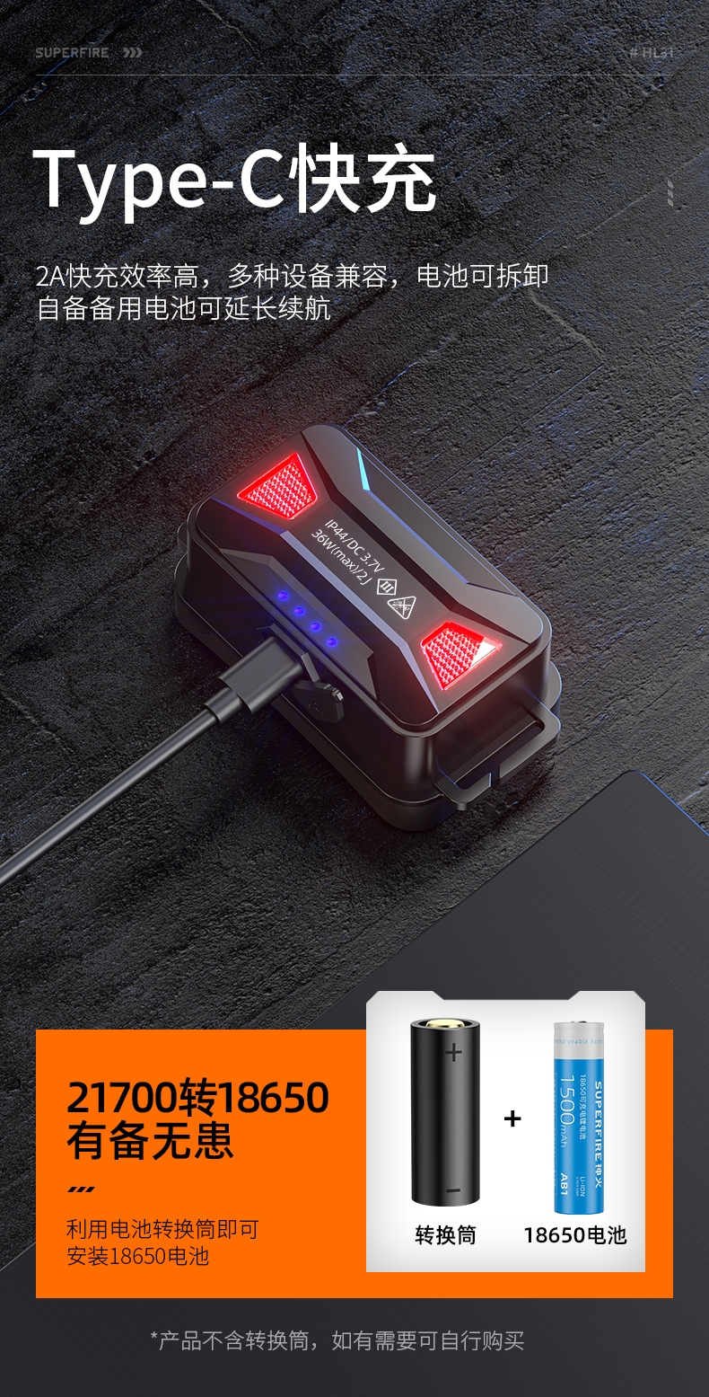 四档调光 Type-C充电 电量显示 铝合金筒身 持久续航 强力防水