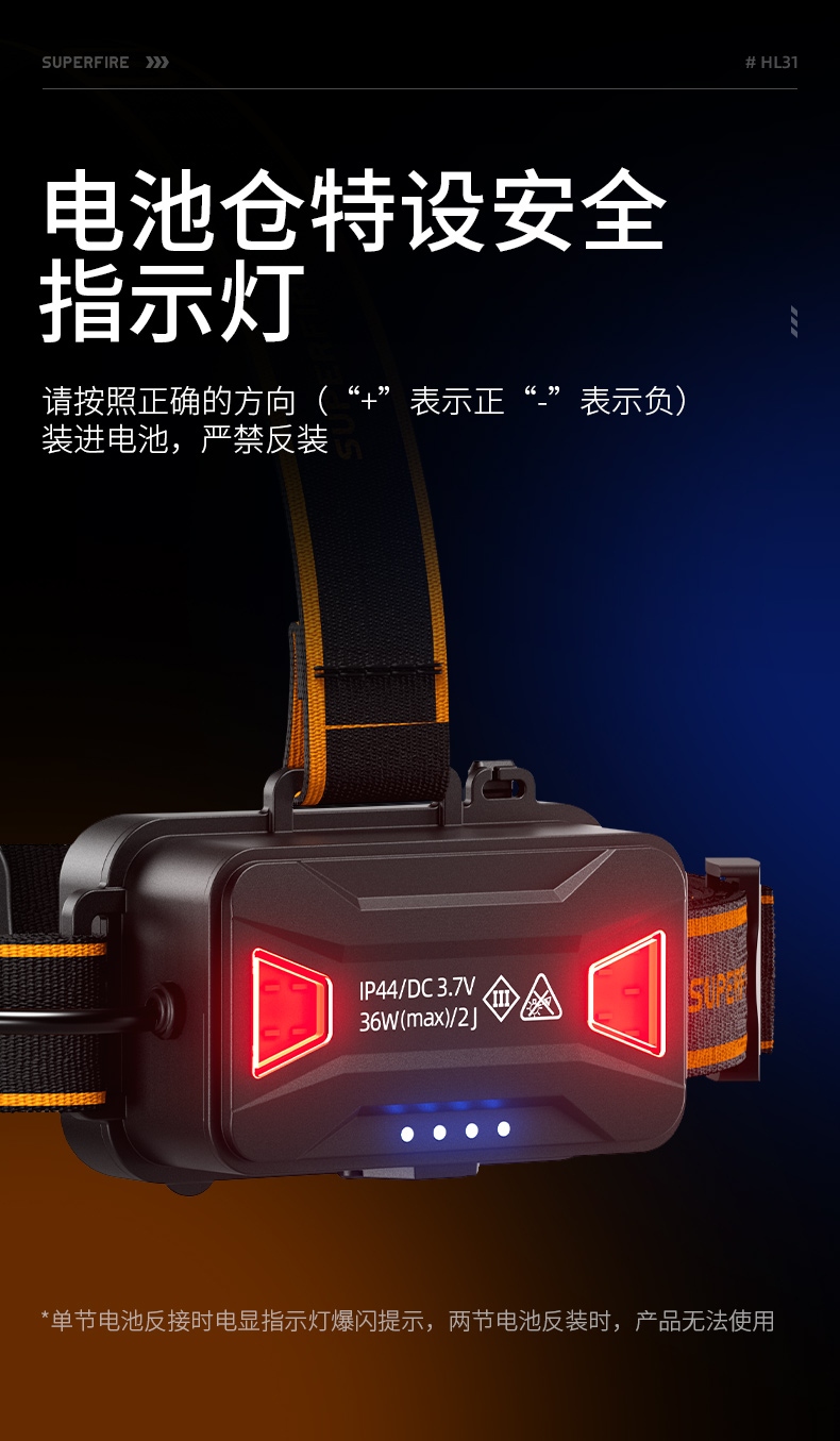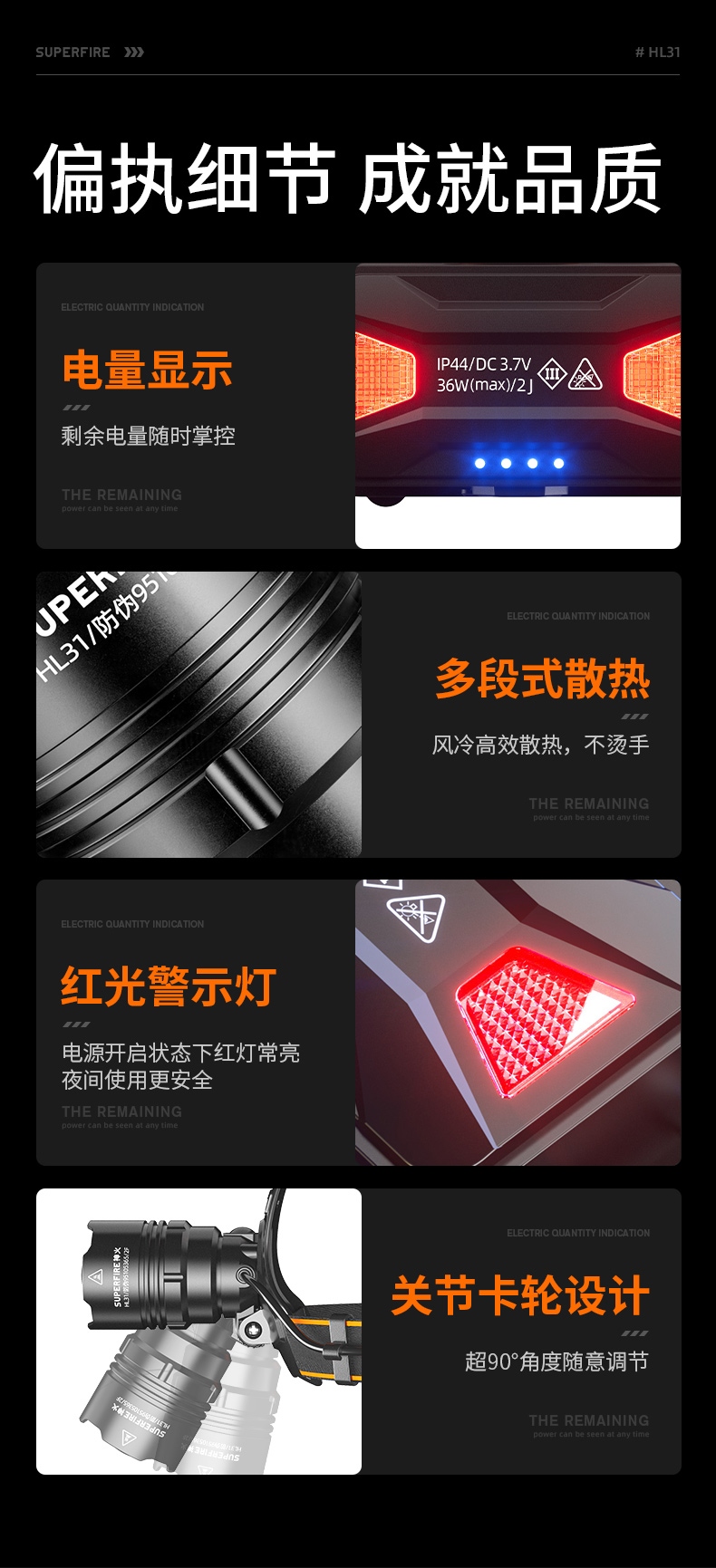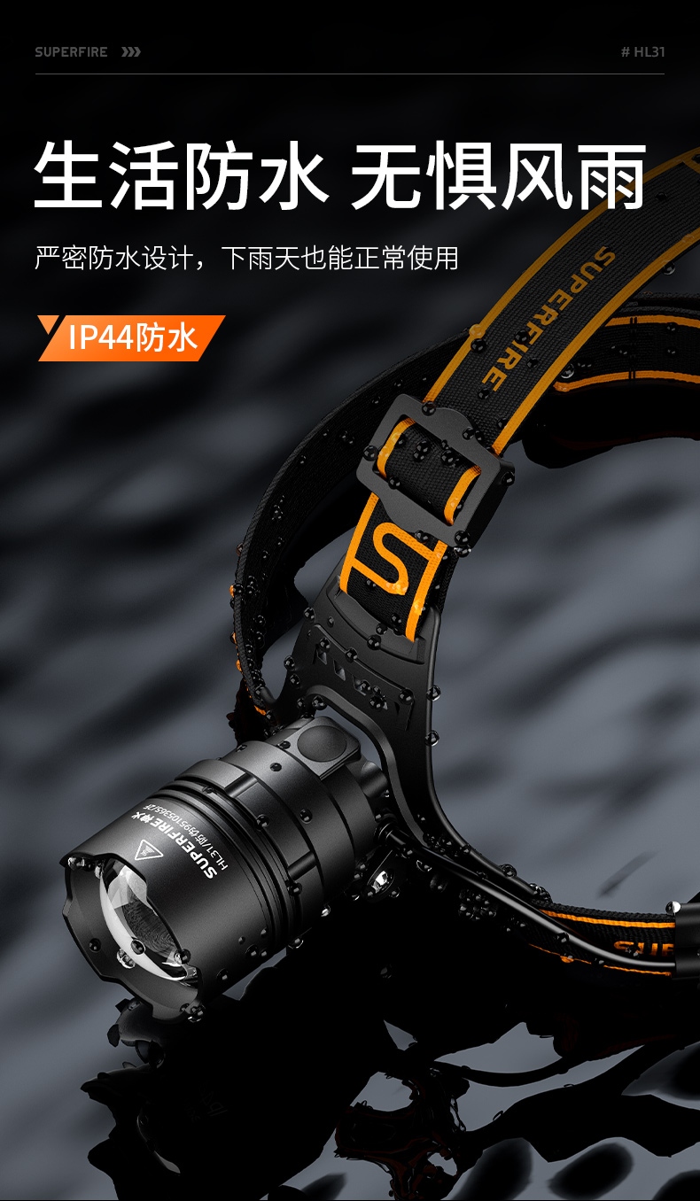 强光亮度,运动头灯,前后均衡设计,轻便不压头,可调节式头灯带,佩戴方便舒适,伸缩调焦,光照范围大,照射距离远,头灯角度调节,超90度角度随意调节,适宜各种环境使用