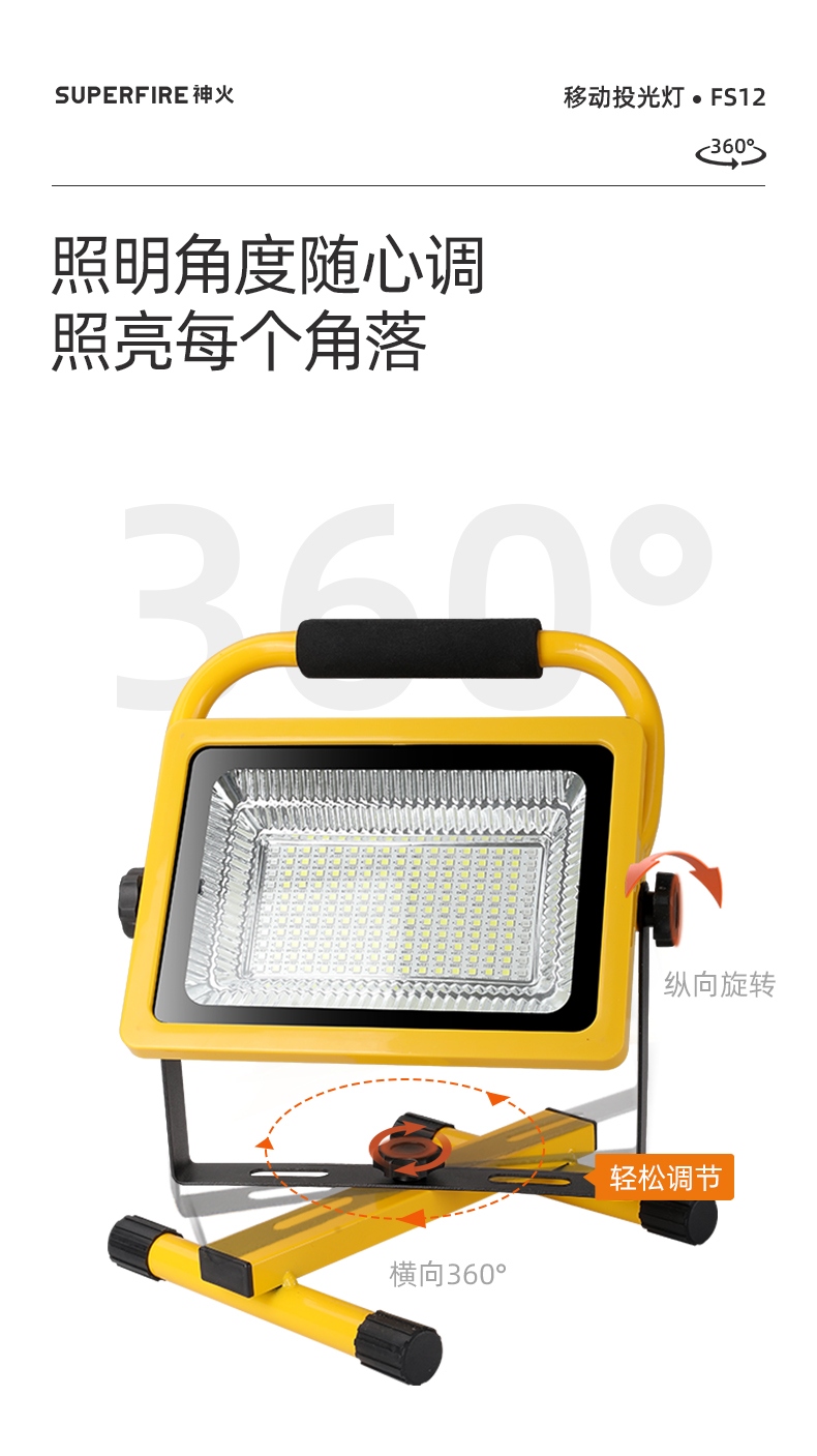 2.照明角度随心调,纵向360°,横向360°。