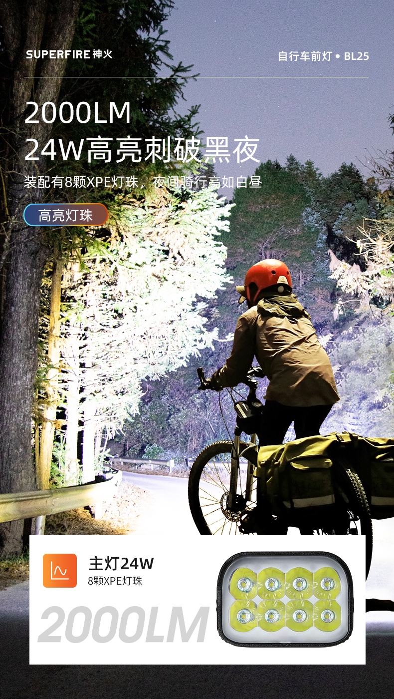 1、千米远射,射程更远,光斑更聚焦。 2、进口灯珠,亮度高,照明效果更好。 3、前后双按键,光源一键点亮,高亮瞬间开启。