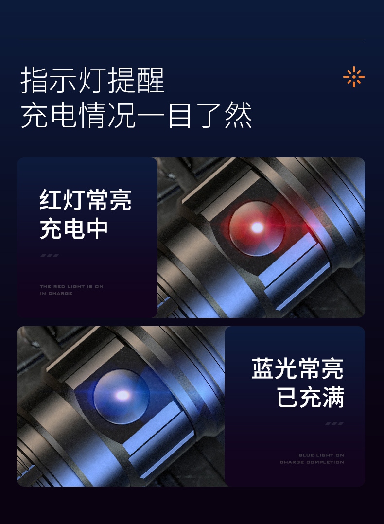 四档调光 Type-C充电 电量显示 铝合金筒身 持久续航 强力防水