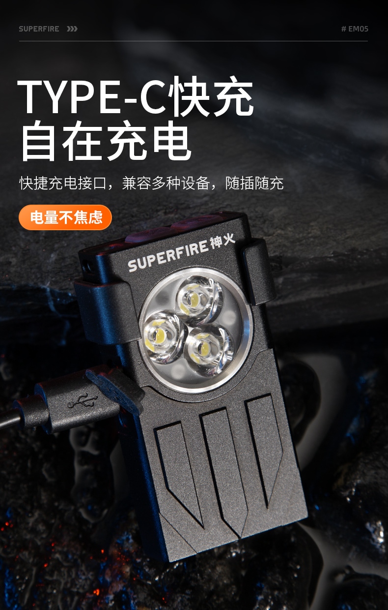 四档调光 Type-C充电 电量显示 铝合金筒身 持久续航 强力防水